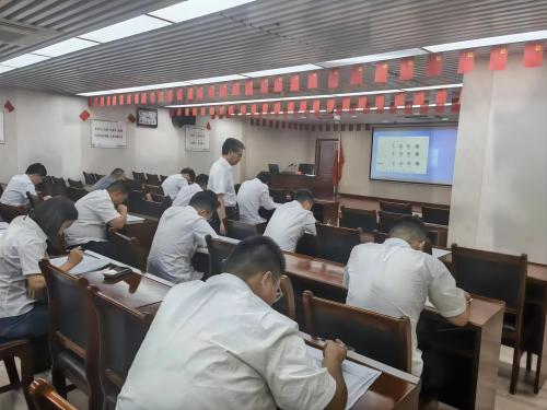 2022年9月29日下午,濟南公司在駐地學(xué)習(xí)廳組織2022年一級建造師考前模擬考試,處室及本埠項目部分考生現(xiàn)場參加,其余考生在項目部會議室參加,綜合辦公室工作人員通過騰訊會議進行視頻監(jiān)考。濟南公司副總經(jīng)理孫立舉巡考。